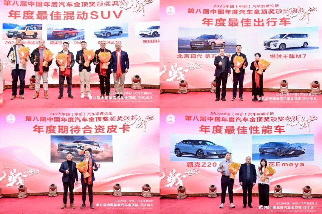 中國(中部)汽車發展論壇結束后,激動人心的第八屆中國年度汽車金頂獎頒獎典禮環節拉開序幕,27項重磅大獎逐一揭曉,以比亞迪、吉利、奇瑞、長城、宇通、一汽紅旗、江淮汽車等為代表的中國主流汽車品牌,以上汽大眾、一汽-大眾、廣汽豐田、一汽豐田、東風本田、鄭州日產、長安馬自達等為代表的主流合資品牌,以及以理想、零跑、問界、小鵬等為代表的中國造車新勢力,分別斬獲各項大獎。