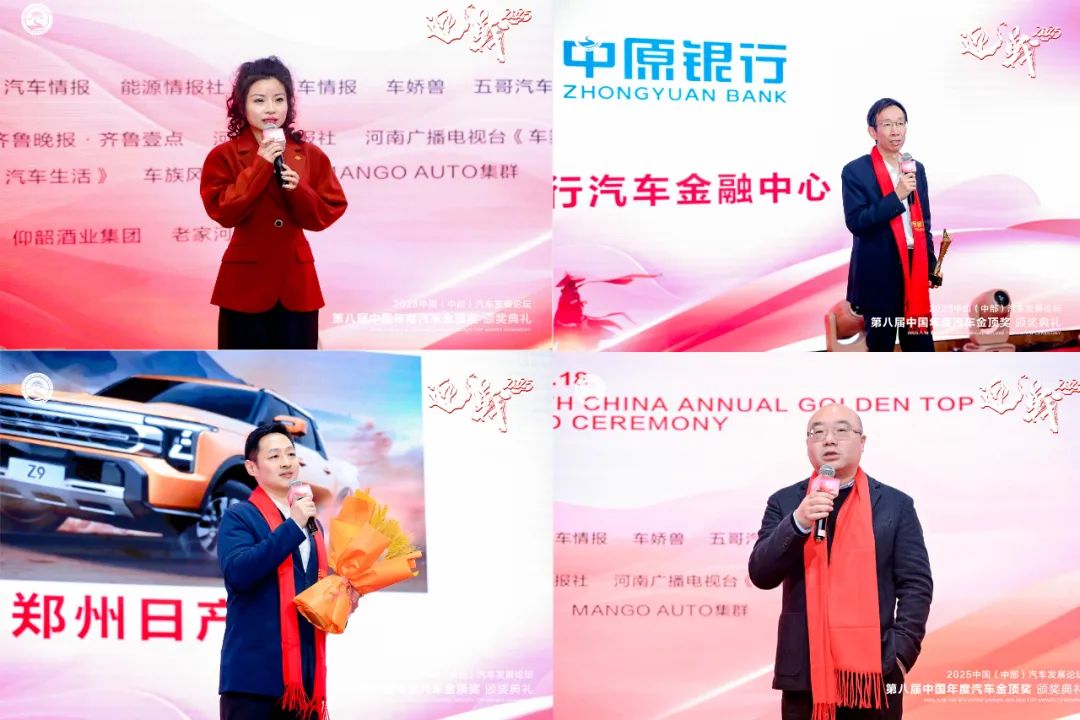 天公作美!1月18日,中原大地艷陽如春!來自全國近50家車企及部分產業鏈企業主要負責人齊聚鄭州,2025中國(中部)汽車發展論壇在電影與現實交織、及歷史與未來對話中隆重舉行,第八屆中國年度汽車金頂獎的各大獎項隨后也在這里一一揭曉。來自中國汽車工業協會、全國乘用車信息聯席會、中國汽研、河南省改革發展研究院、河南省新能源商會、河南省汽車工程學會、河南省汽車行業商會、河南省汽車經銷商商會等行業主管部門和各大商協會的主要領導,與來自全國各地的10余家主流汽車媒體代表一起,共同見證了屬于中國汽車人的年度高光時刻。