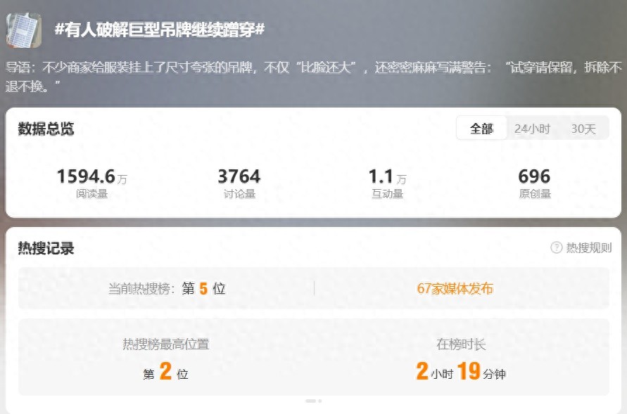 11月24日,話題“ 有人破解巨型吊牌繼續蹭穿 ”沖上熱搜。