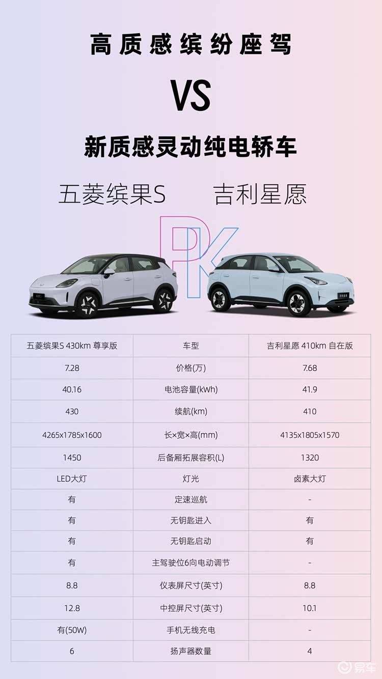 配置豐富程度也直接影響車輛的實用性。星愿價格比繽果S貴4000元,但在配置上并未展現出優勢。星愿配備鹵素大燈、4個揚聲器以及塑料方向盤,而繽果S則采用LED大燈、6個揚聲器和仿皮方向盤。繽果S還比星愿多了定速巡航、主駕電動調節和50W手機無線充電功能。從配置和性價比的角度來看,繽果S更勝一籌。