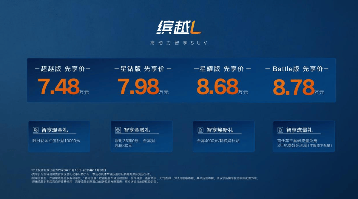 當一輛車在籃球總決賽的喧囂中登場,并由NBA/CBA雙料冠軍孫悅揭幕時,它的基因里就寫滿了“競技”二字。11月15日,吉利繽越L Battle版在深圳“我們的籃球”第4季總決賽現場正式上市。新車以限時先享價8.78萬元的價格登場,宣告自己不只是車系中的頂配,更是一臺為“Battle”精神打造的原廠運動座駕。